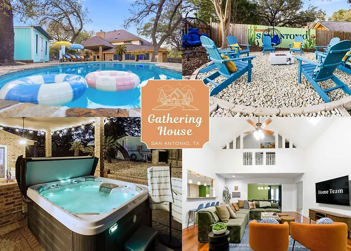 Questo luogo dispone di una cucina completamente attrezzata con una lavastoviglie e un forno. Anne Marie's, che serve una vasta gamma di piatti, si trova a 2 km. La villa Gathering House- Movie & Game Room Hot Tub & Pool dista inoltre 5 km dall'aeroporto Internazionale di San Antonio. La villa Gathering House- Movie & Game Room Hot Tub & Pool dispone di una piscina privata e offre la possibilità di partecipare a ciclismo.